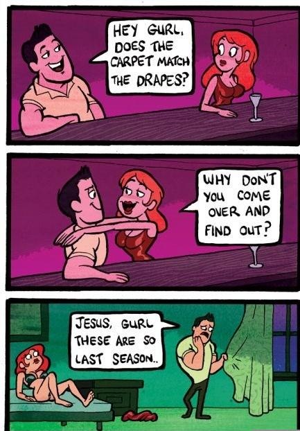 I don't think that this is exactly what she had in mind. I don't exactly think that this guy is straight either. It makes for a funny comic strip though.