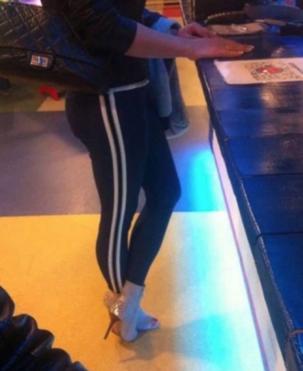 Wear sweatpants and high heels if you want to combine casual and chic. Wear this to the gym.
