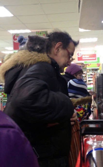Now you don't have to buy a separate cat carrier. You can just put your cat inside the hoodie on your coat and you're good to go to the vet.