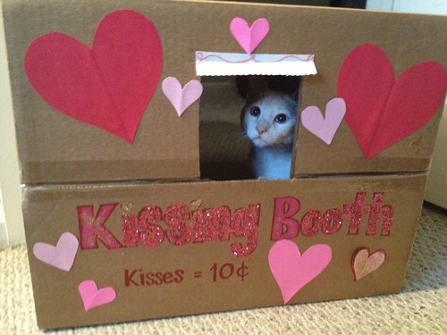 Get your cat kisses now with this kitty cat kissing booth. Kisses are free all day today only $0.10. That is a bargain for such a cute kitty.