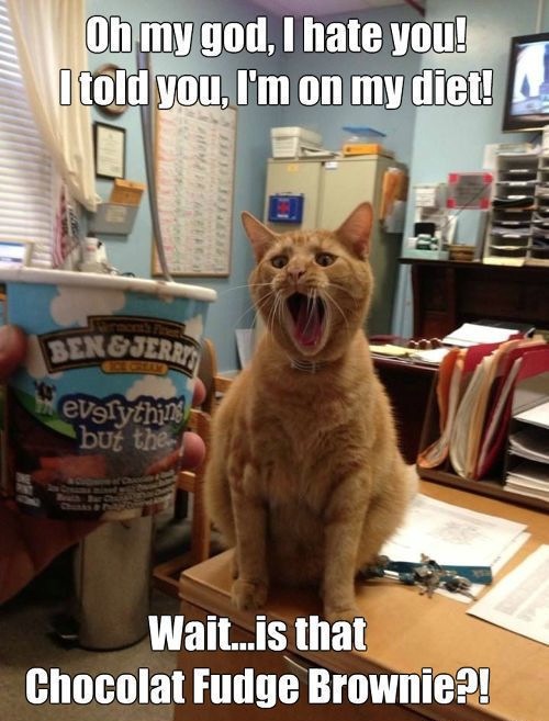 Cat OMG! I Hate You, I'm On My Diet! Wait... Is That Chocolate Fudge Brownie?!