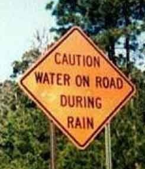 I cant belive that someone ordered this road sign "CAUTION water on road during rain" its like what were they thinking.
