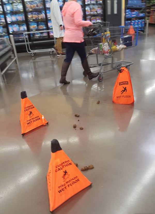 I think I'm going to pass on shopping at Walmart from now on. Likely this was not a dog and I'm thinking slipping on human poop is a fate worse than death.