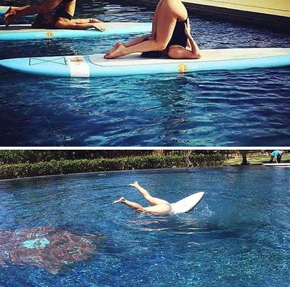 Lady Gaga looks amazing doing an extreme yoga pose while on a paddle board. Can an average person do it? Probably not!