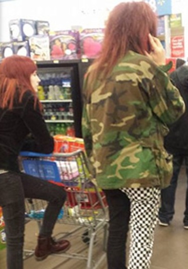 Checkerboard Leggings and Army Jacket at Walmart. Matching Clothes Fail