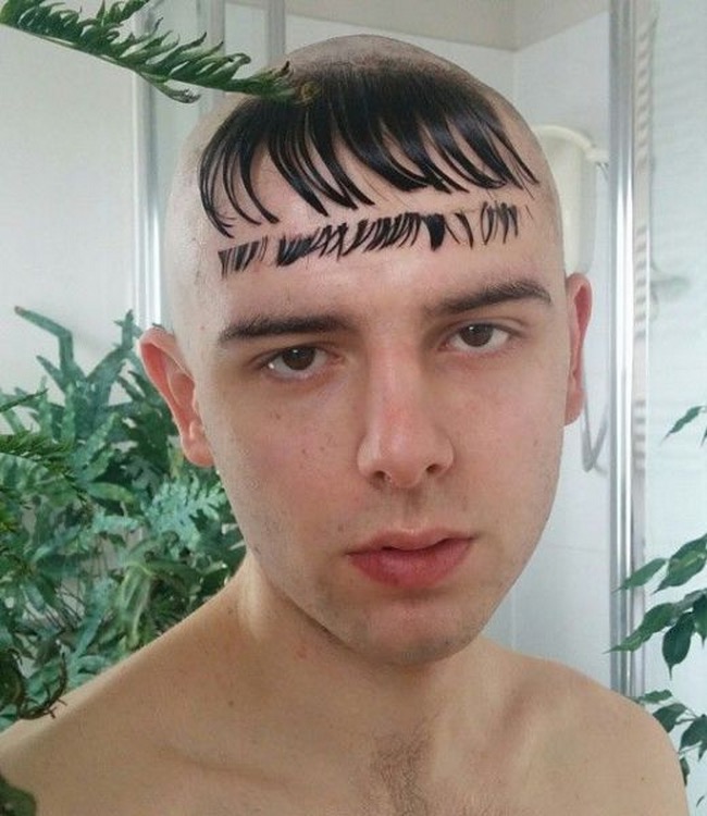 Wow that is extremely sexy if you are a member of some obscure tribe in the middle of the Amazon. Here at civilization we generally frown on looking this ridiculous. He might have accidentally cut his brains.