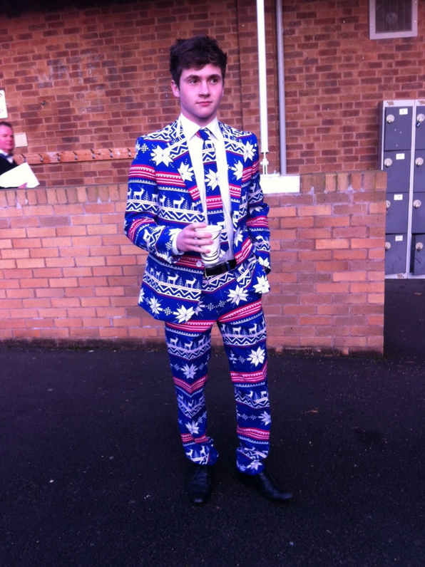 One kid in my school came dressed like this to school and we asked him "why" he replied Christmas dont be late