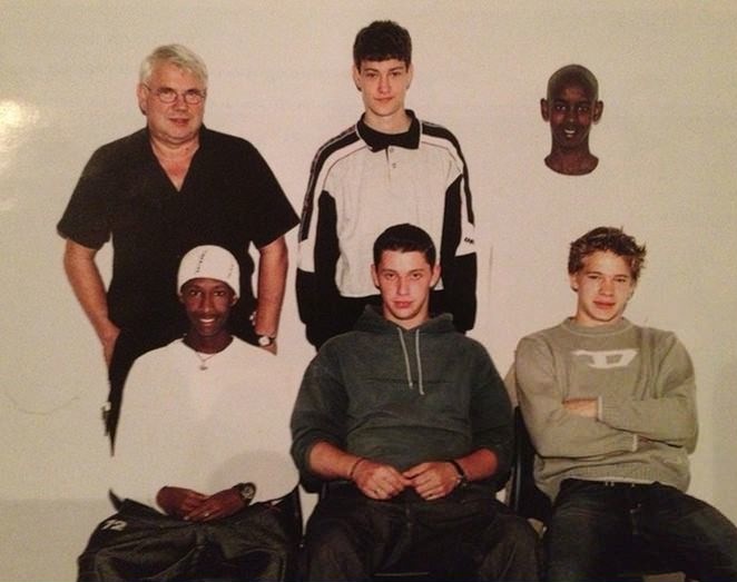 Next time you take a class photo make sure your choice in clothes doesn't blend in with the background! In this case this guy looks like his body just completely disappeared leaving just a head and neck!
