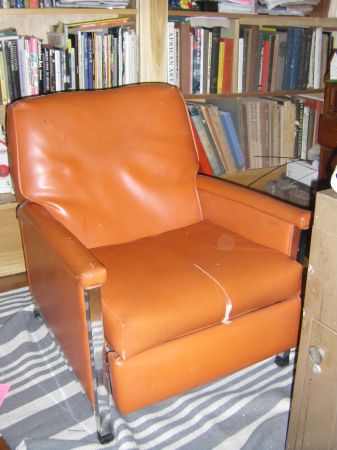 This vintage orange arm chair is really sturdy and in great shape. The only problem is that there is about a 6 inch tear in the vinyl on the seat. Free for anyone who can come pick it up (2nd floor of a brownstone). Text or call me at 347.403.4050 if you are interested.
