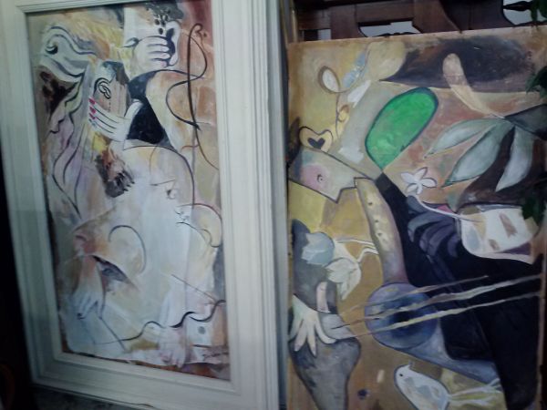 I have three large 6.5ft by 3.5 ft wooden frames with three different oil paintings on wood. The frames are very well constructed and are about 8 in wide. They are painted with an antiqued whitewash finish.