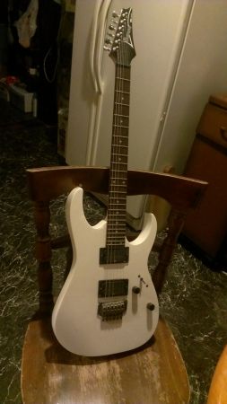 I am selling a white Ibanez guitar with a line 6 amp both rarely used