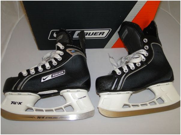 Up for your consideration is a pair of Nike Bauer Youth Hockey Skates in good, clean, used condition. Black. Size 2 Youth. (For a 7 or 8 year old). Comes with Original Box.