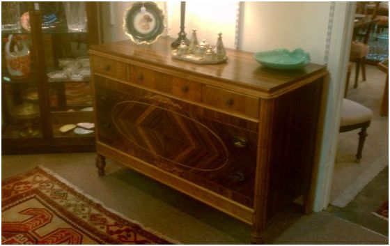 This is a unique piece and it would go great in a foyer with a couple candlestick lamps on it. There is inlay practically everywhere you look on this chest. Call or text Chris @ four zero four 664-1141