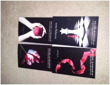 Selling a brand new set of Twilight series books in paperback. including Twilight, New Moon, Eclipse, and Breaking Dawn. They are all brand new.. never read and never opened. I received them as a birthday gift but have not read them and I don't have time. The books look a little faded in the picture but it's because of the flash. Call 661-433-2018