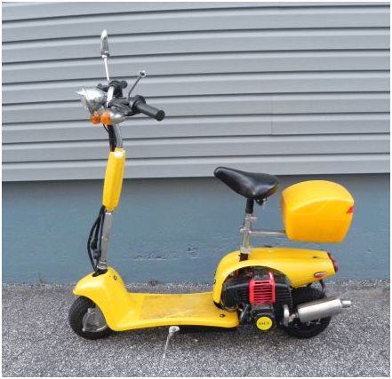I have 2 gas 43cc Scooters they both run one needs more work than the other. They both need new battery's but they are only used for the electric start, the pull lever works good. They go about top-speed of 35mph....very fun..