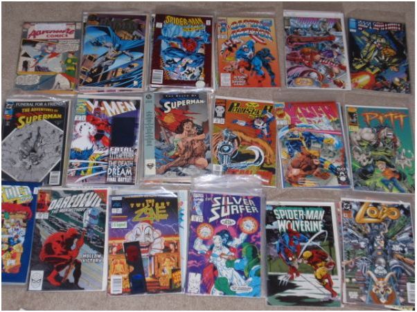 Various comic books mostly from the 1990's but also some from the 1980's and 70's including X-Men, Superman, Batman, Silver Surfer, Spiderman, Lobo, Avengers, Daredevil, Flash, Justice League, Spiderman 2099, X-Men 2099, Archies, dventure Comics, What if, Who's Who, Nomad, Marval Saga, Fantastic Four, Venom, Wildcats, Pitt, Punisher, Punisher 2099, Re-Animator, Wolverine, Captain America etc. There are 90 total comics . 314-229-0939. $50 or open to any trades so let me know what you got. Thank you