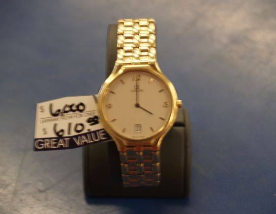 Very nice Omega watch. 18k gold band and face. Weighs 89 grams. We unfortunately do not have have the box for it but we have verified the serial numbers. Unit has had a full background check and is 100 percent good to go. Works fine and keeps great time. This could be that SPECIAL present for that important someone in your life!