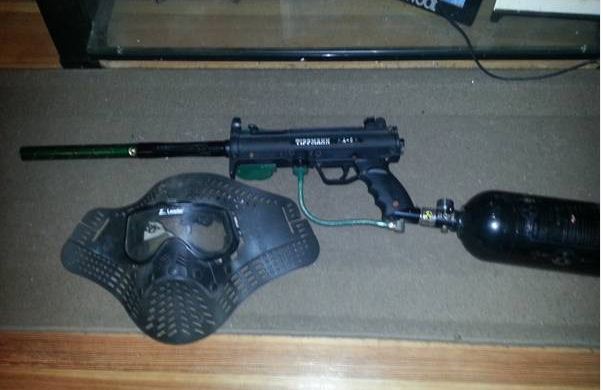 tippman a5 paintball gun barely used. aftermarket barrel, 3000 psi compressed air tank, mask asking for 200 but willing to take b.o.
