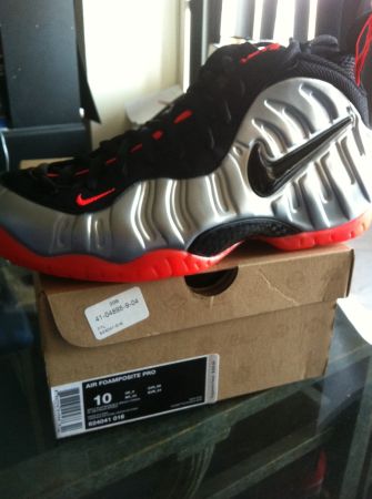 I have the brand new silver and orange crimson foamposites.size 10... Brand new in the box with receipt.. MY PRICE IS FIRM !!! ONLY SERIOUS BUYERS PLEASE !!! Call Paul at 212 729-8292