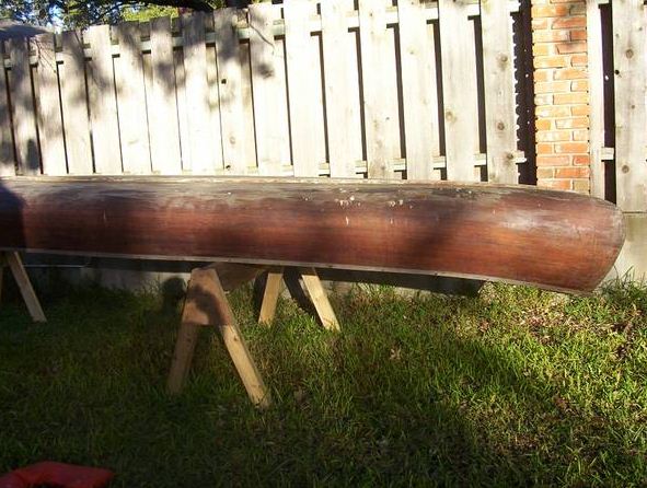 This canoe was hand built by a Scoutmaster and his son in the early 1960s. It is made of hundreds of redwood square section strips individually laid and glued together, then sanded flush and sealed with resin. A genuine American Classic, and one of the coolest canoes you are likely to see. It is a full sixteen feet in length, and built for cargo / camping use. The beam is 38", which was intentionally built a bit wider than the Boy Scout plans called for. With a wide flat bottom, mild tumblehome, and symetrical bow and stern, this is a very stable design with big water capability, and also well suited to sail rig if you're of a mind to fit a mast or two to it. No trailer is included, but it does include life vests, paddle, and a gallon of resin I was going to use to refinish the wood (Redwood will never rot, but it does need to be sanded and re-varnished occasionally to look its best). I will consider offers and interesting trades. Steve. 210-Seven-Eight-Nine-2764.
