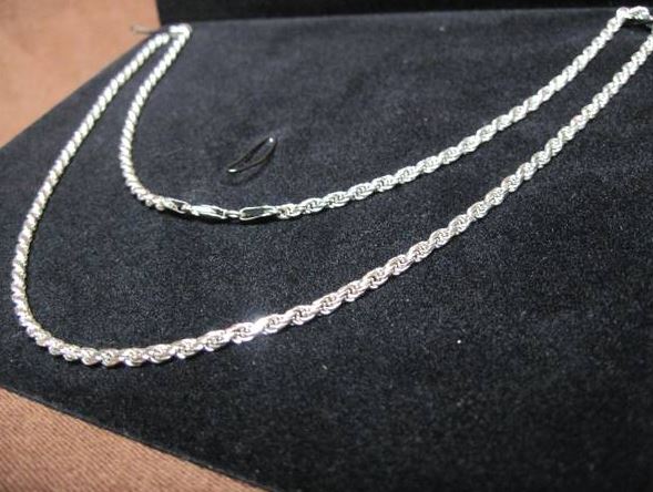 We are selling this immaculate rope chain--It is 17.3 grams of 14kt white gold--23" in length--Call for pricing--Also selling watches!!!!