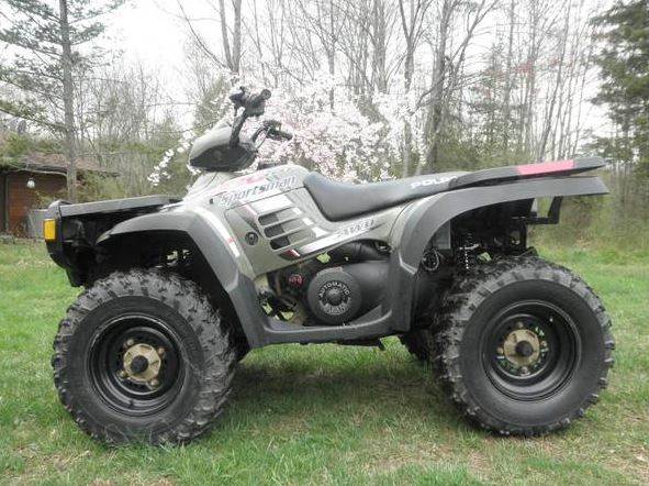 For sale, is a 2004 Polaris Sportsman 500 high output. This atv shows normal use but is still in fair condition shape and has low miles and low hours. The tires have good tread and everything works fine except the gas gauge, it reads one bar off in the fuel level but still works. Two after market off road lights are mounted on the front end by the factory lights. All plastics are in good condition, no cracks or breaks in them. This atv starts right up and the motor runs great.