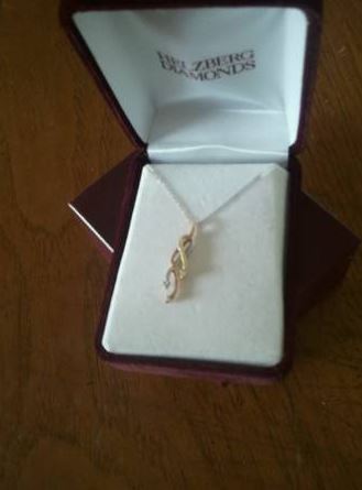 One necklace has 3 types of gold: gold, rose gold and white gold with 3 diamonds-1 at each tip