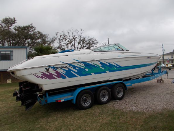 2000 FORMULA 312 FASTECH, WITH TWIN 7.4 MPI'S, WITH ONLY 100 HRS. BIMINI TOP, COCKPIT COVER, STAINLESS STEEL PROP, TRIM TABS AND STEREO. ALL ON A TRIPLE AXLE TRAILER WITH BRAKES.