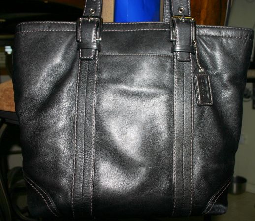 I HAVE A USED COACH HAMPTONS BLACK LEATHER LUNCH TOTE HANDBAG FOR SALE/TRADE THE STYLE # IS F11201
