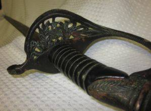 Musician Sword created for the organization "United Veterans of the Confederacy" formed in 1889. The sword is believed to have been produced after that date in New Orleans, LA. Blade 30" long, overall length is 35 1/2" long. Call for additional information, 770-725-2207.