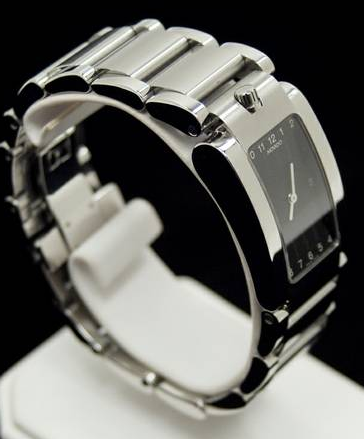 Posting includes the Movado Elliptica stainless steel watch with a new battery and watch gift box. The initials MCS are engraved on the back. The polished and brushed stainless steel look fantastic and it works good too. Don't miss out... Call or text (314) 973 - 6547.