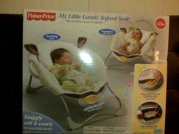 Selling a Fisher Price Infant Seat - slightly used, almost like new. Very comfortable, soft cushioning material. Cradles and supports baby's head. Has a mirror dome with stuffed animal toy overhead. Plays soothing classical music and lullabies. Vibrates gently to keep baby relaxed. Daughter loved it!!!!! Hurry before it goes!!!! Call me - April 718-749-6454.