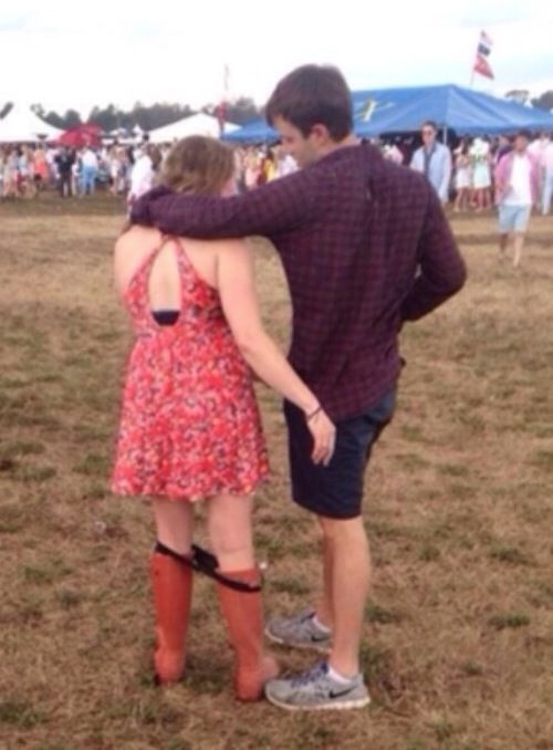 I tell you maybe she just finished going to the bathroom and forgot to pull up her underwear? Either that or they both just got dressed after rolling around in the hay