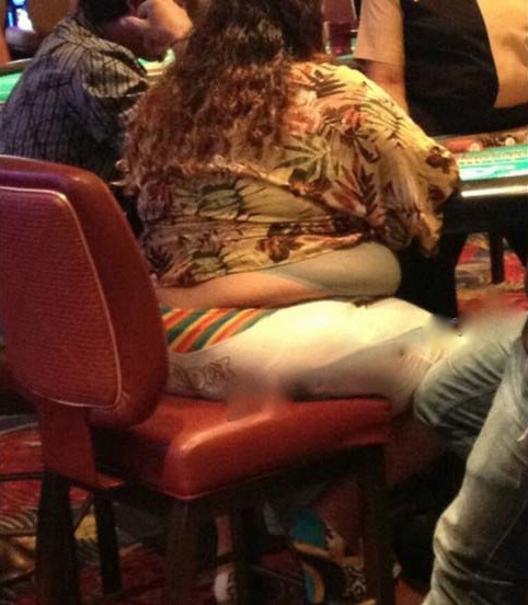 This girl sitting in the casino really should consider going shopping today instead of gambling. The outfit is completely awful. She needs a wardrobe makeover.