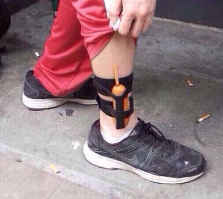 Ok I guess this guy is really packing tonight. The club is getting rough and he has to pull out his corn dog to get the situation under control, like maybe combat low blood sugar.