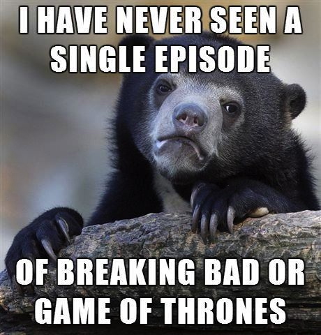 Confession Bear definitely lives in a cave. It's the only plausible explanation for him not seeing two of the biggest shows on television right now.