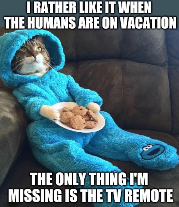 I rather like it when humans are on vacation. I'm only missing the TV remote!