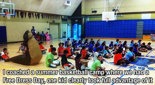 So apparently there was a costume day at basketball camp. One kid got carried away. Check out what he wore.