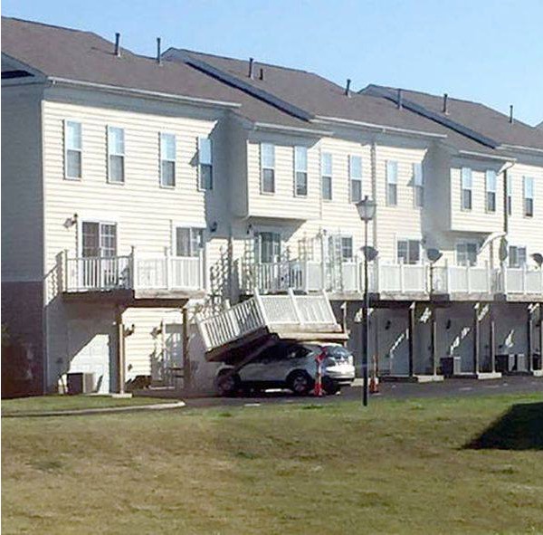 I always wanted a covered spot and now I finally have one. Could somebody get this deck off of my SUV? First time ever I was in an accident while not moving.