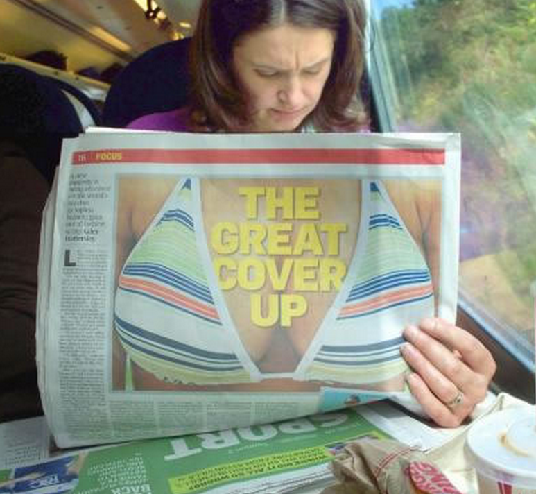 The woman was trying to cover her boobs but that was a big fail on her part, we can still see it.