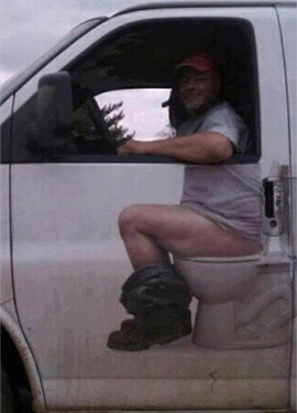 This is the best truck ever. He never has to leave his driver's seat except maybe to eat! LOL. Definitely a fun ride. Toilet seat trucker...