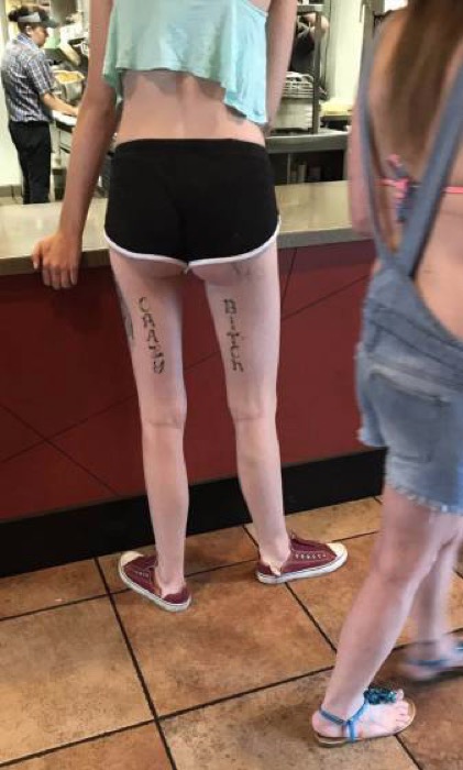 I'm thinking she's crazy to begin with. Throw on a tattoo that says crazy bitch and you are pretty much certified crazy.