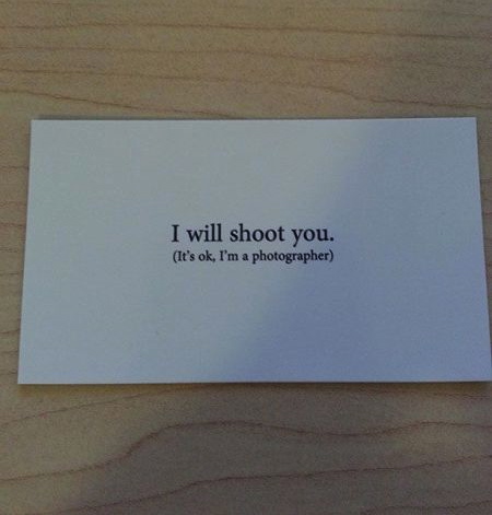 I will shoot you! But don't worry, it's safe. I'm a photographer. I will shoot you with my camera. It won't kill you.