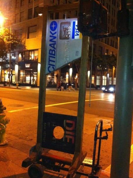 Put your head in this credit card guillotine and get your head choped off! Citibank and discover cards are razor sharp with your debt!