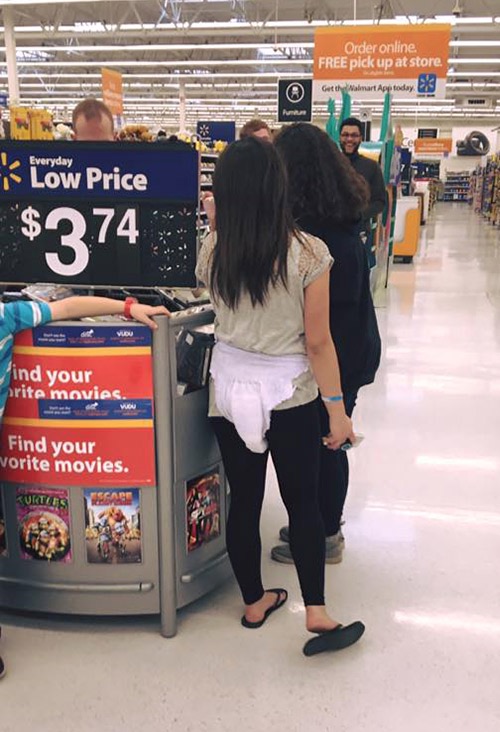 Hopefully she is not starting a new fashion trend. Next time she needs to wear it under her clothes. It's going to like pretty bulky though, especially when it's full.