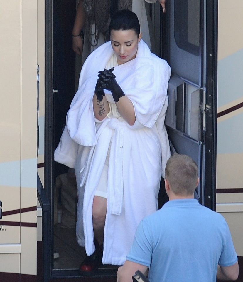 Demi Lovato was escorted from her trailer to a dirty alley to continue filming scenes for the clip.