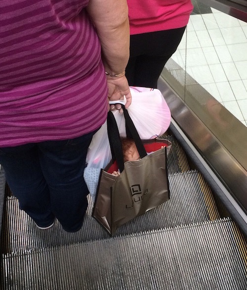 Now you can look like real high society carrying your baby around in a bag at the mall. Hopefully your kid appreciates that mom is a bag lady.