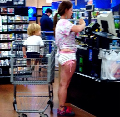 You really have to be brave to wear a diaper around in public. But this woman has no problem with it. She can share diapers with her ban boy!