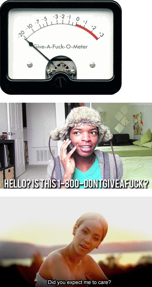 Apparently nobody gives a fuck anymore especially customer service and beyonce. You can obviously see this on the fuck-o-meter.