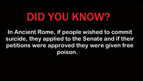 Did You Know?? That in Ancient Rome people who wanted to kill themselves (suicide) they would have to go to the senate to get approval to kill themselves, and if the senate agreed on letting them doing it they would even give them poison.